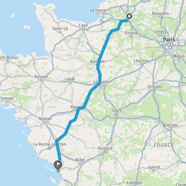 Continuer E501 (L'Océane) sur 84 kilomètres