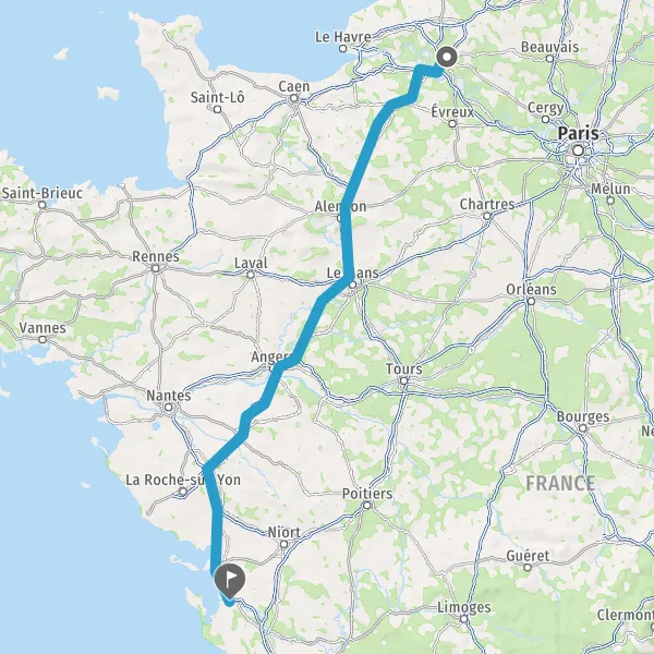 Continuer E501 (L'Océane) sur 84 kilomètres