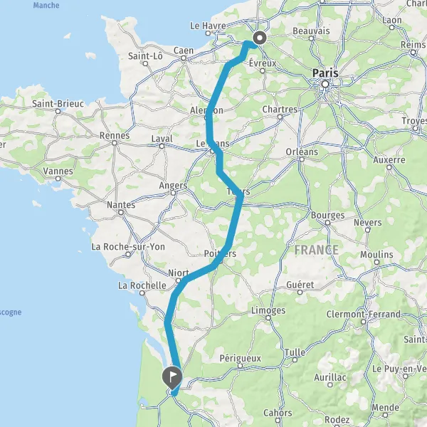 Prendre à droite et rejoindre A10. Continuer sur 344 kilomètres