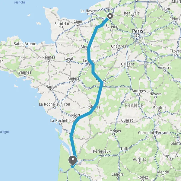 Prendre à droite et rejoindre A10. Continuer sur 344 kilomètres