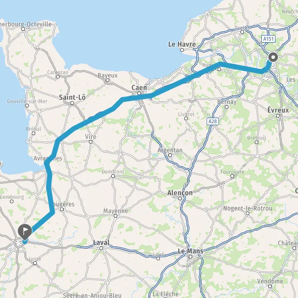 Prendre à droite et rejoindre A84 E401. Continuer sur 165 kilomètres