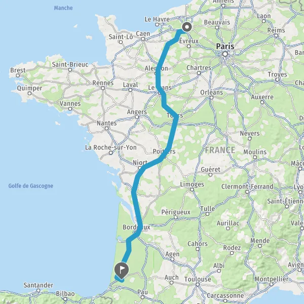 Prendre à droite et rejoindre A10. Continuer sur 344 kilomètres