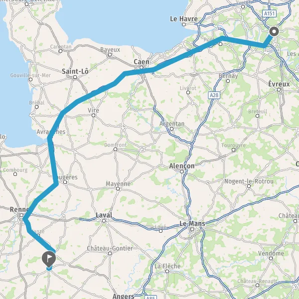 Prendre à droite et rejoindre A84 E401. Continuer sur 165 kilomètres