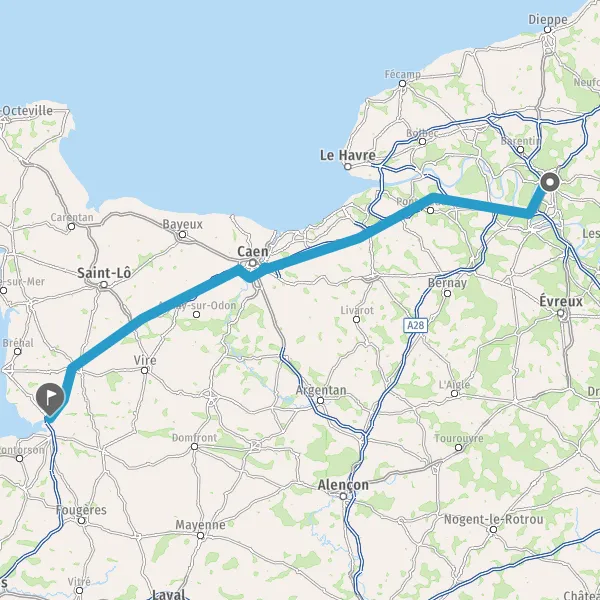 Prendre à droite et rejoindre A84 E401. Continuer sur 93 kilomètres