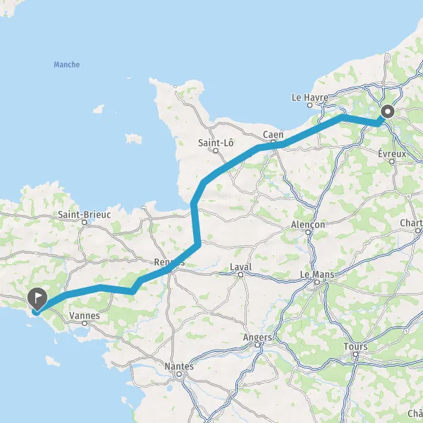 Prendre à droite et rejoindre A84 E401. Continuer sur 165 kilomètres