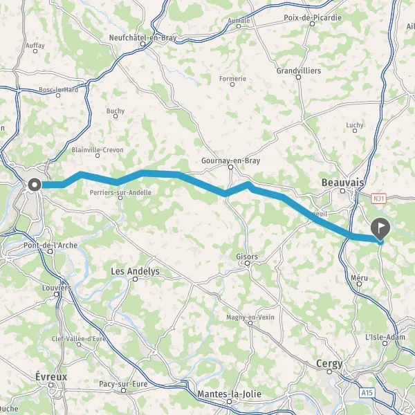 Tourner légèrement à droite sur N31 E46 (Route de Gournay) et continuer sur 750 mètres