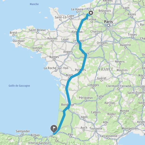 Prendre à droite et rejoindre A63. Continuer sur 183 kilomètres