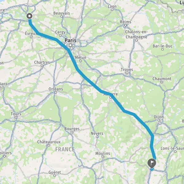 Prendre à gauche et rejoindre A6. Continuer sur 292 kilomètres