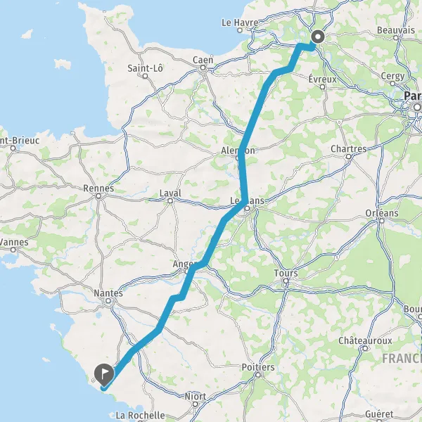Continuer E501 (L'Océane) sur 84 kilomètres