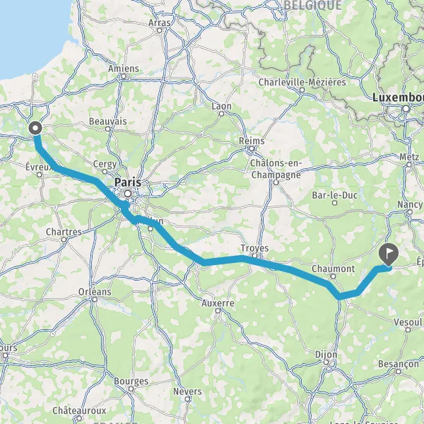 Prendre à droite et rejoindre A13 E5. Continuer sur 59 kilomètres
