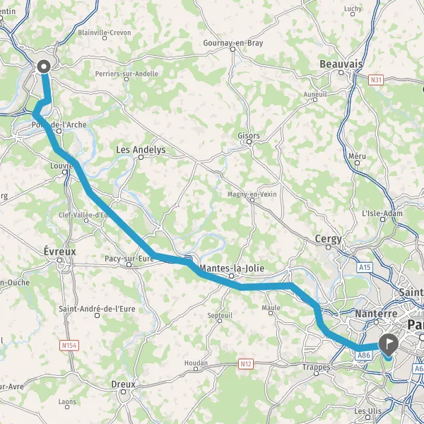 Continuer et rejoindre A13 E5. Continuer sur 89 kilomètres