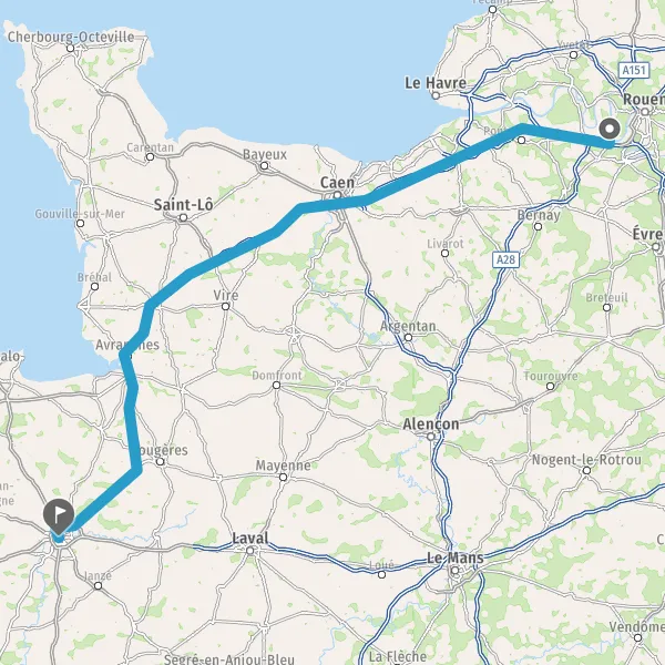 Prendre à droite et rejoindre A84 E401. Continuer sur 165 kilomètres