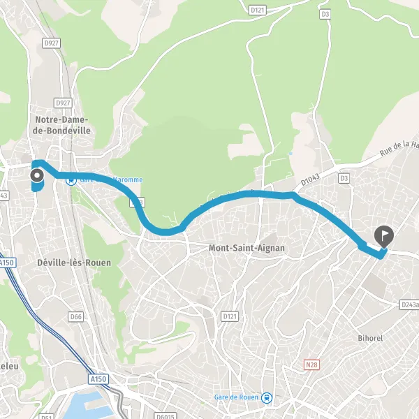 | Distance en voiture | 7,4 km à 7,5 km |