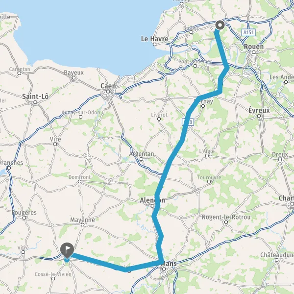 Prendre à droite et rejoindre A28 E402. Continuer sur 173 kilomètres