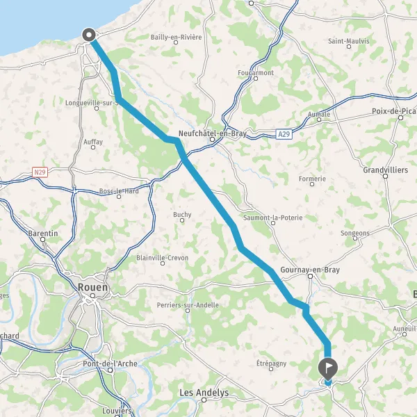 Au rond-point, prendre la 3ème sortie sur D915 (Route de Dieppe) et continuer sur 6,8 kilomètres
