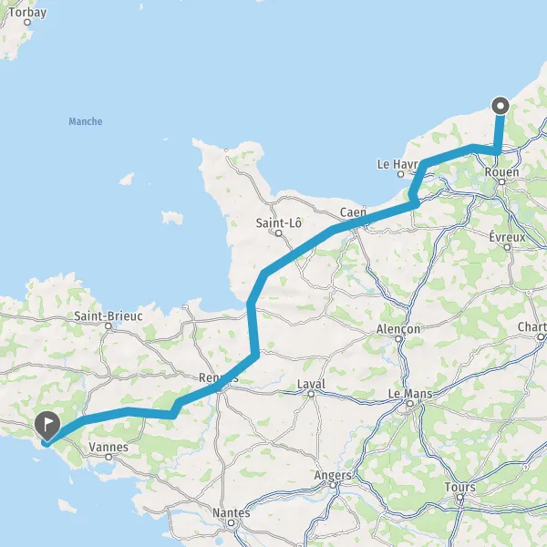 Prendre à droite et rejoindre A84 E401. Continuer sur 165 kilomètres