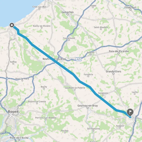 Tourner légèrement à droite sur D133 (Rue de Gournay) et continuer sur 7 kilomètres