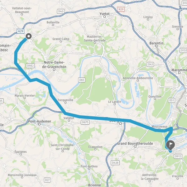 Au rond-point, prendre la 2ème sortie sur D910 (Route de Bolbec) et continuer sur 170 mètres