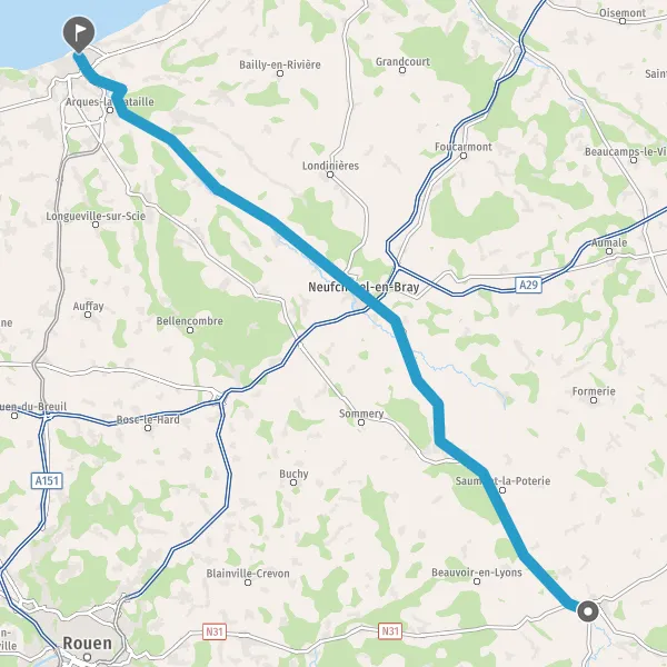 Tourner légèrement à droite sur D1314 (Route de Neufchâtel) et continuer sur 14 kilomètres