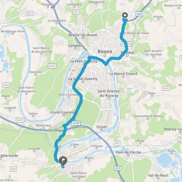 Prendre à droite et rejoindre N338 E402 E46 (Pont Gustave Flaubert). Continuer sur 9,7 kilomètres