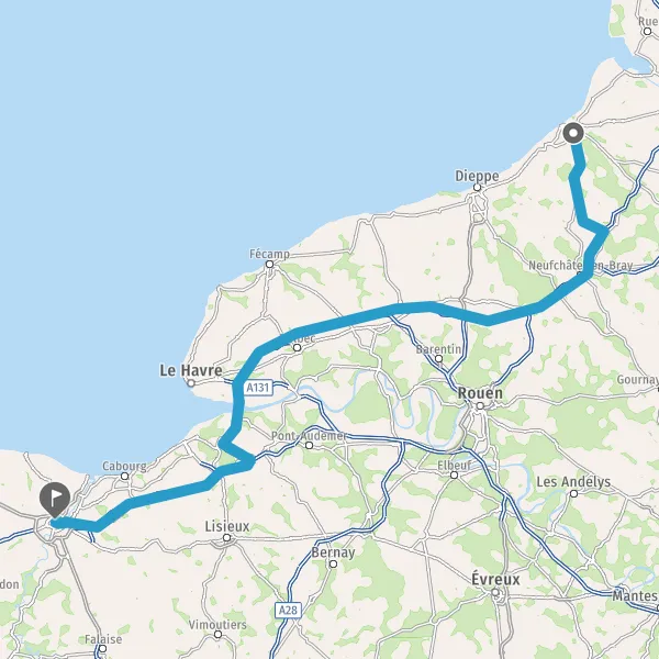 Prendre à droite et rejoindre A29. Continuer sur 38 kilomètres