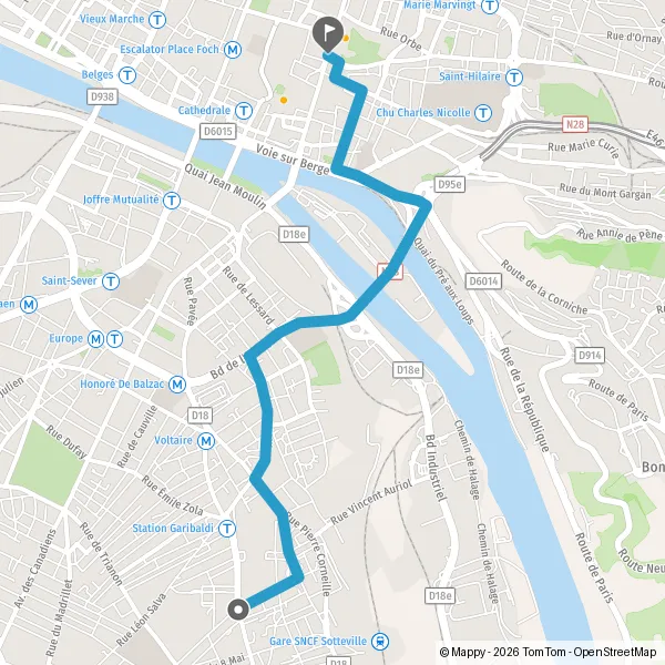 | Distance en voiture | 4,5 km à 4,6 km |