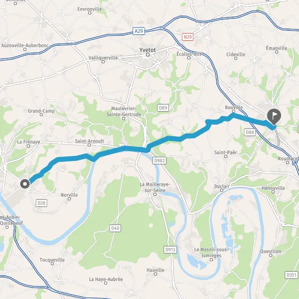 Au rond-point, prendre la 1ère sortie sur D982 (Route de Caudebec-en-Caux) et continuer sur 450 mètres
