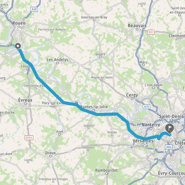 Continuer et rejoindre A13 E5. Continuer sur 20 kilomètres
