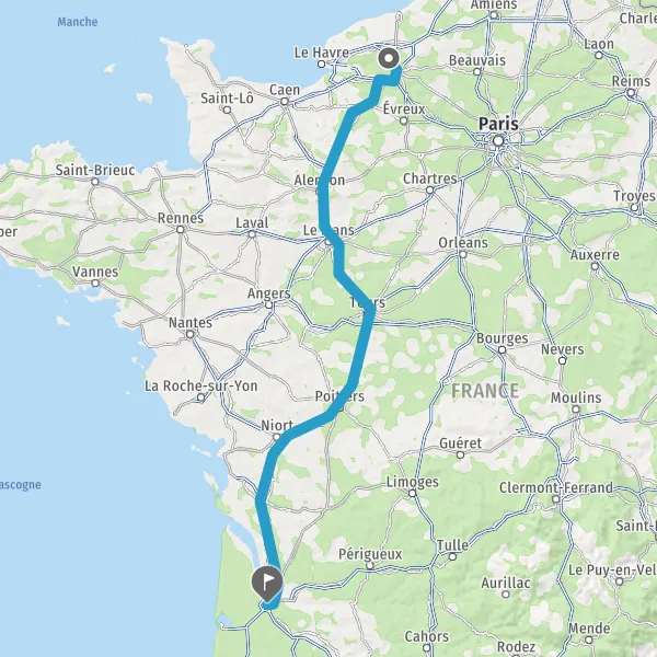 Prendre à droite et rejoindre A10. Continuer sur 344 kilomètres