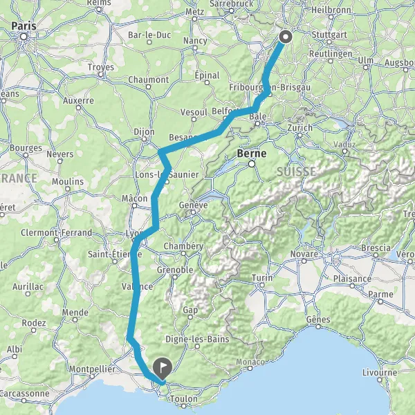 Prendre à droite et rejoindre A36 E54. Continuer sur 650 mètres