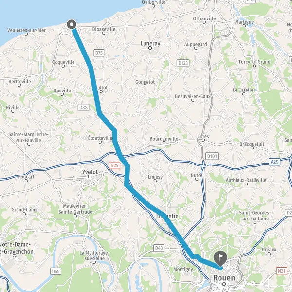 Continuer D20 D107 (Route de Saint-Valery) sur 6,4 kilomètres