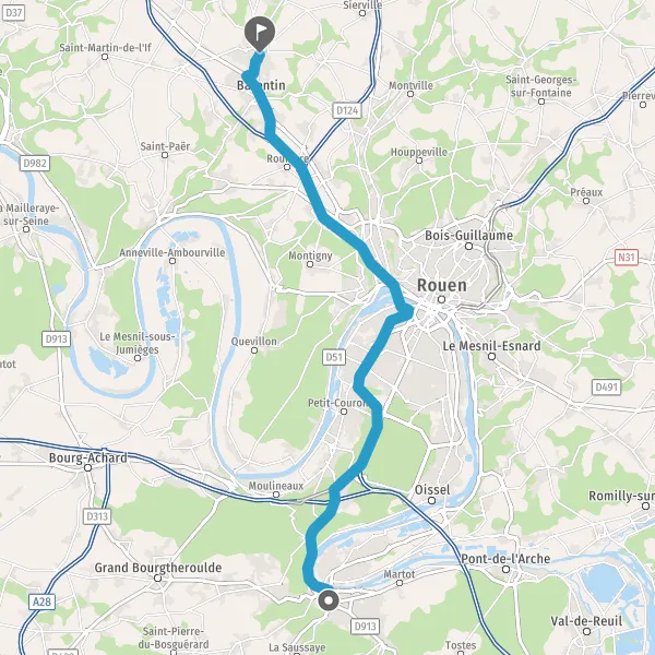 Tourner légèrement à droite sur Pont Gustave Flaubert et continuer sur 12 kilomètres