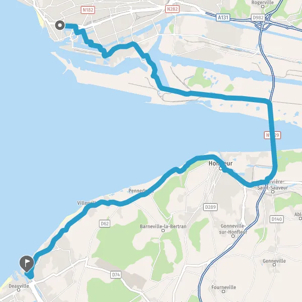 Au rond-point, faire demi-tour et continuer sur D513 (Route de Trouville) sur 7,1 kilomètres