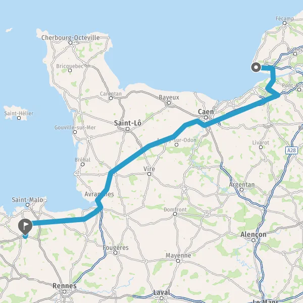 Prendre à droite et rejoindre A84 E401. Continuer sur 101 kilomètres