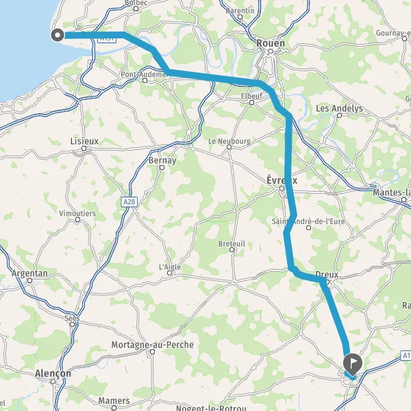 Prendre à droite et rejoindre A154. Continuer sur 27 kilomètres