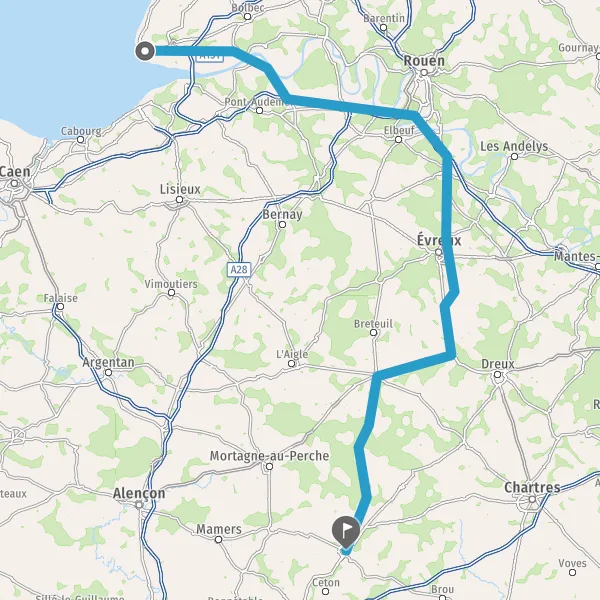 Prendre à droite et rejoindre A154. Continuer sur 28 kilomètres