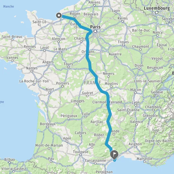 Prendre à droite et rejoindre A154. Continuer sur 28 kilomètres