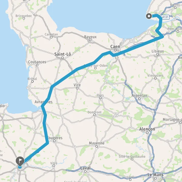 Prendre à droite et rejoindre A84 E401. Continuer sur 165 kilomètres
