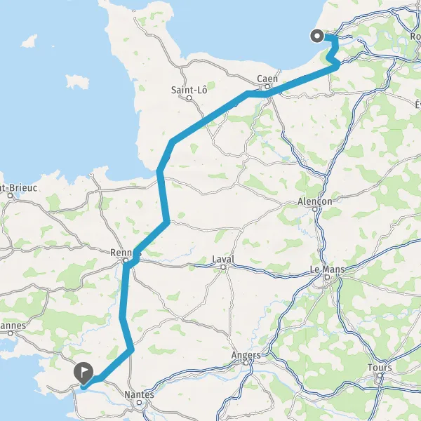Prendre à droite et rejoindre A84 E401. Continuer sur 165 kilomètres