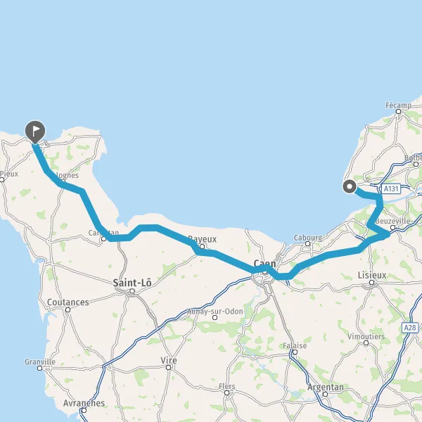 Trajet de Le Havre (76600) à Cherbourg-en-Cotentin (50100) en voiture