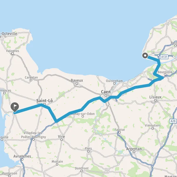 Prendre à droite et rejoindre A84 E401. Continuer sur 45 kilomètres