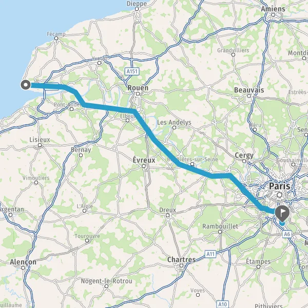 Continuer A13 E5 E46 sur 122 kilomètres