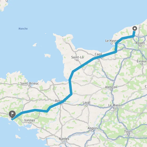 Prendre à droite et rejoindre A84 E401. Continuer sur 95 kilomètres