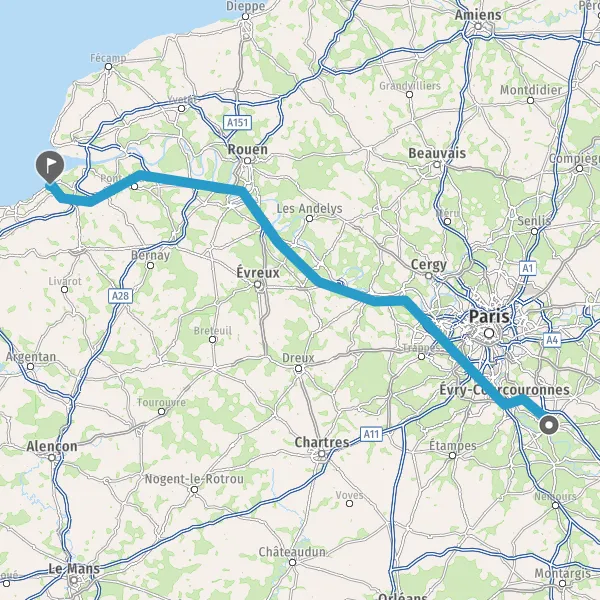 Continuer E46 (L'Autoroute de Normandie) sur 34 kilomètres