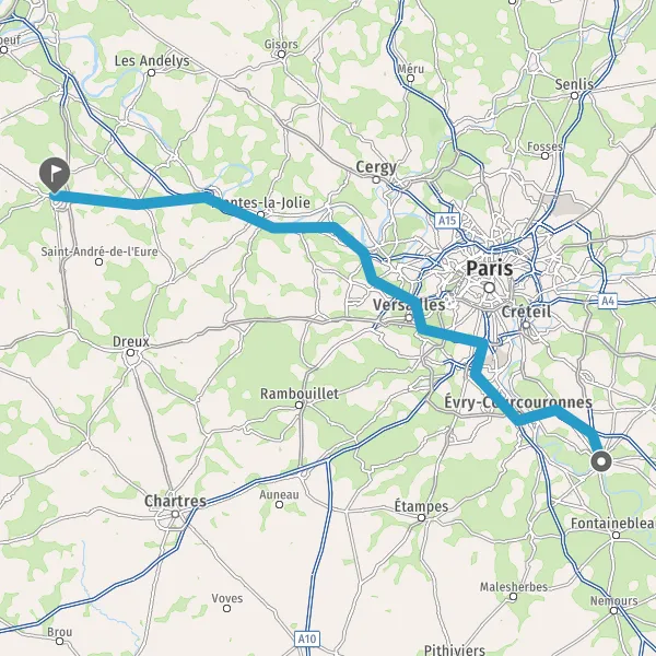 Prendre à droite et rejoindre N104 (La Francilienne). Continuer sur 9 kilomètres