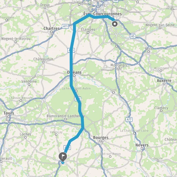 Prendre à droite et rejoindre A20. Continuer sur 55 kilomètres