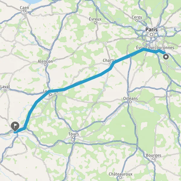 Prendre à droite et rejoindre A11 E50. Continuer sur 147 kilomètres