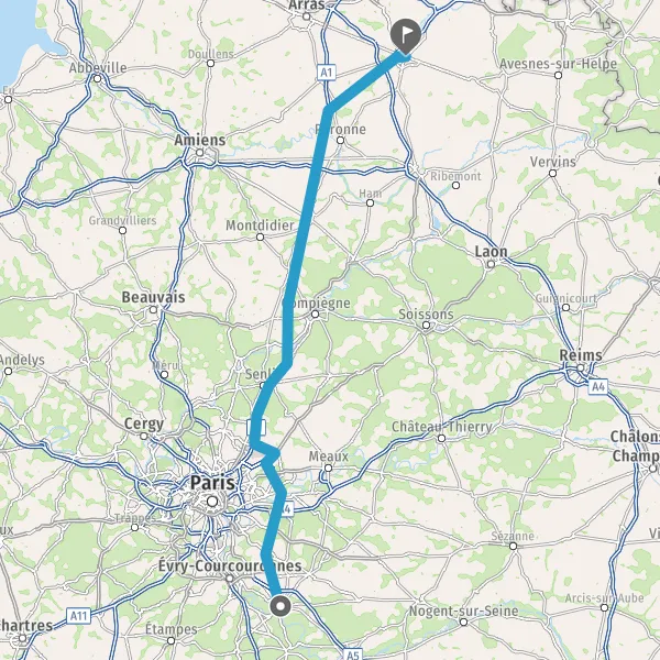 Continuer et rejoindre A1 A1 E15 E19. Continuer sur 121 kilomètres