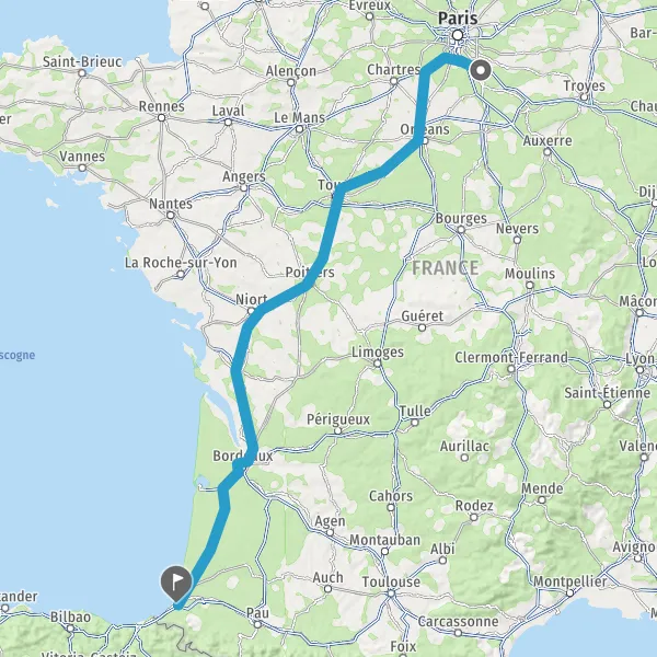 Prendre à droite et rejoindre A63. Continuer sur 172 kilomètres