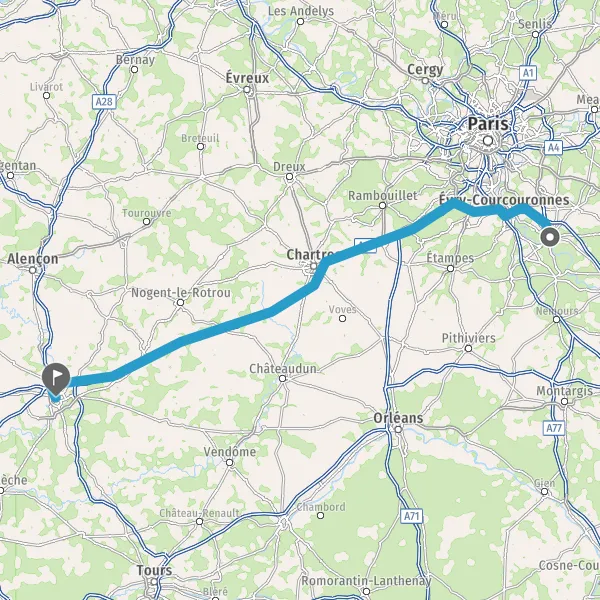 Prendre à droite et rejoindre A11 E50. Continuer sur 144 kilomètres
